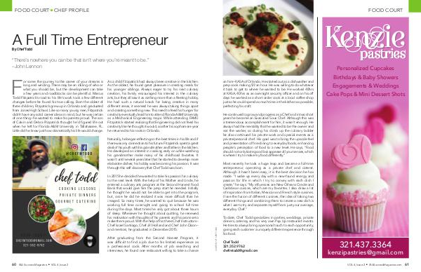 entrepreneur, operating as a private chef and caterer.