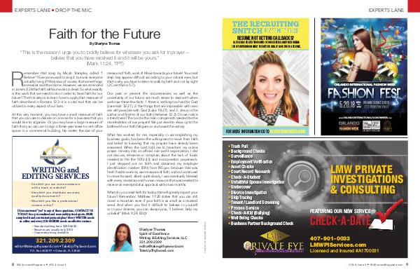 321. 209.2309 editor @ takeupthysword. com • TakeUpThySword. com P. O. Box 608297 • Orlando, FL 32860 measure of faith, work it! Move towards your future! Your next step may appear difficult according to your natural eyes, but that is why you have to learn to walk by faith and not by sight( 2 Corinthians 5:7).